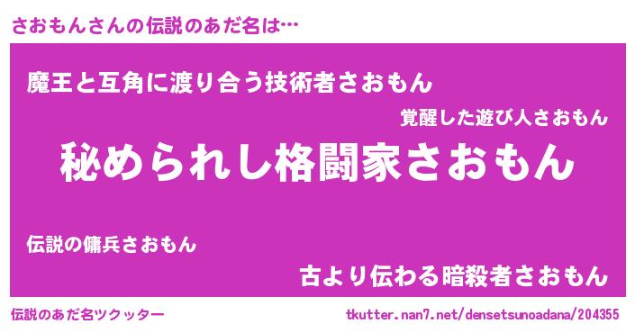 | 意味不明あだ名 | 『さおもんフォーエバー』『自称さおもん』 |
