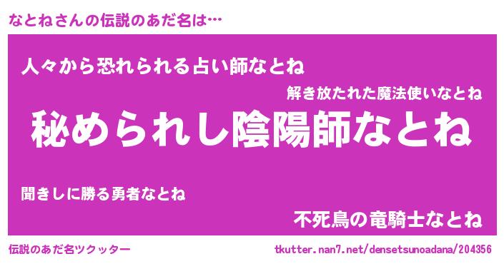 | 意味不明あだ名 | 『なとねフォーエバー』『自称なとね』 |