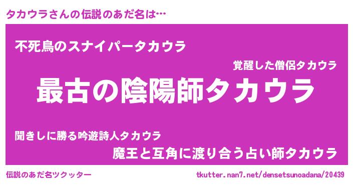 | ファンタジー風あだ名 | 『カークタカラー』『ユリタカヴァット』 |