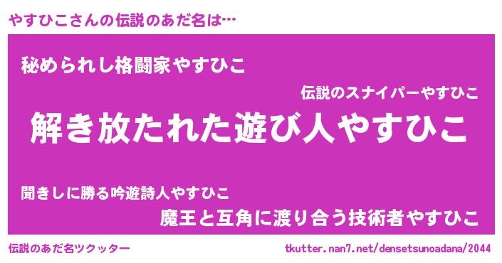 | 意味不明あだ名 | 『とにかく怪しいやすひこ』 |