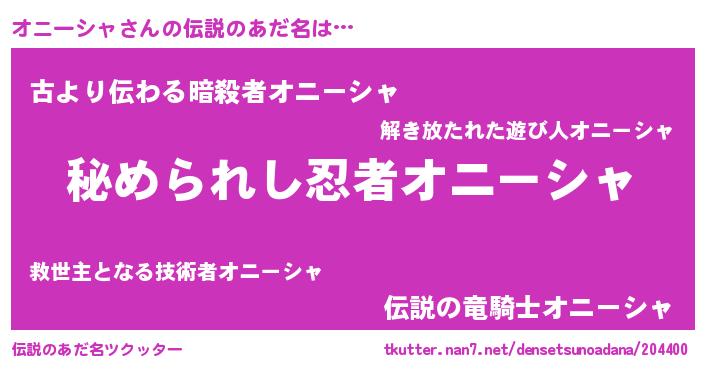 | 意味不明あだ名 | 『オニーシャフォーエバー』 |