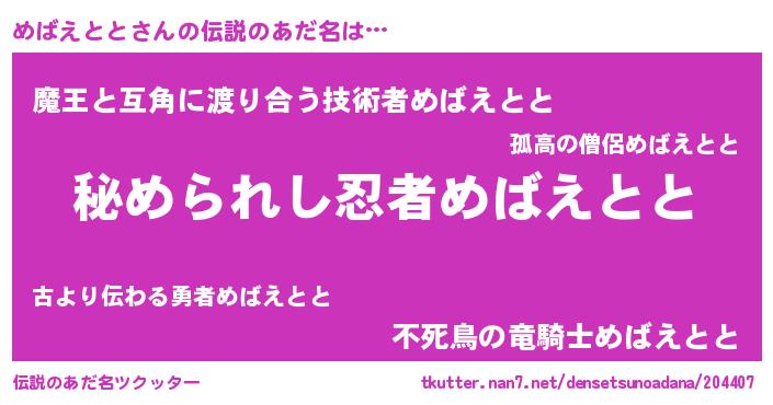| ヒーロー風カッコイイあだ名 | 『仮面メバダー』『友情の使者めばえとと』 |