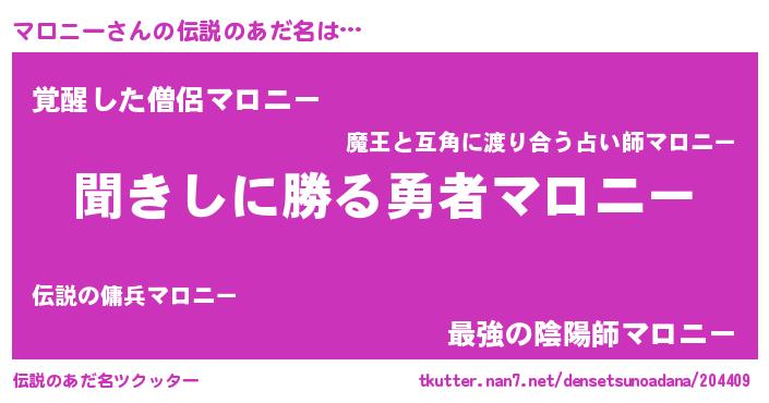 | ヘコむあだ名 | 『マロニー(震え声)』『マロっぺ』 |