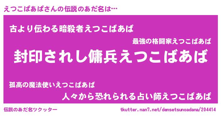 | 胡散臭い通販商品みたいなあだ名 | 『億万長者になれる水晶球…その名も「えつこばあば」』 |