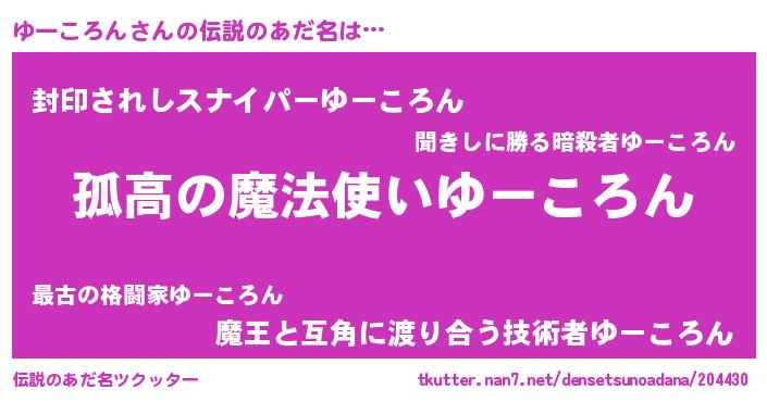| 意味不明あだ名 | 『とにかく怪しいゆーころん』 |