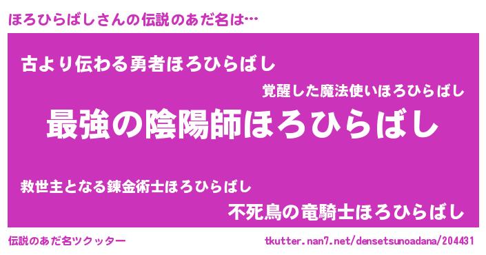 | ヒーロー風カッコイイあだ名 | 『究極戦士ホロヒラバシ』『炎刃騎士ホロ』 |
