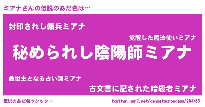 | 意味不明あだ名 | 『住所不定無職ミアナ(89歳)』 |