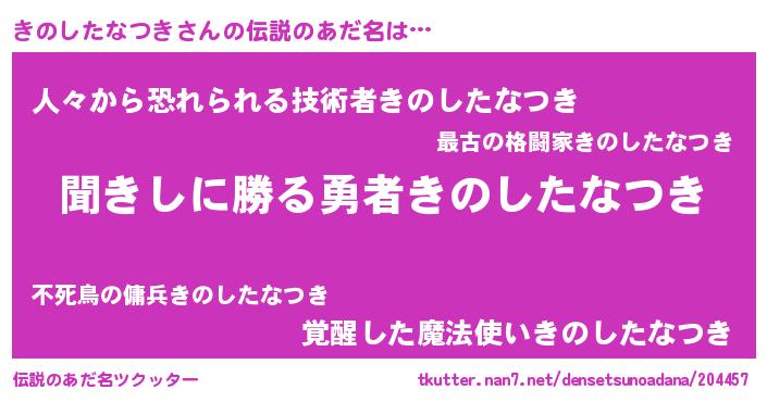 | 男性向けラノベタイトル風あだ名 | 『きのしたなつきという概念が存在しない退屈な世界 』 |
