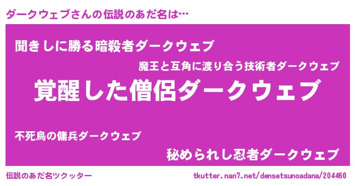 | 男性向けラノベタイトル風あだ名 | 『ダークウェブの嫁は女の子じゃないと思った?』 |