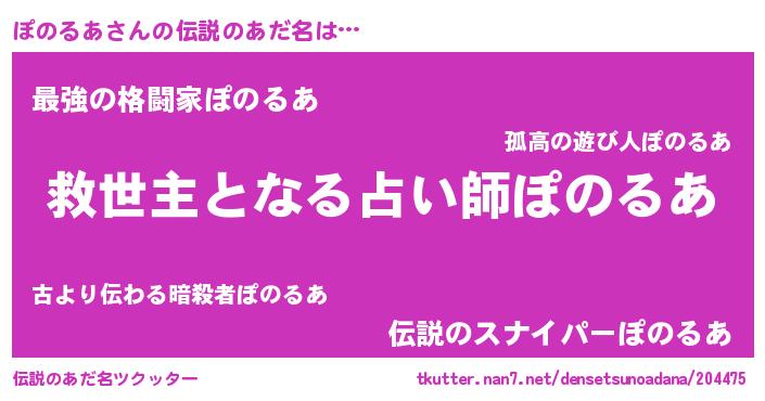 | 男性向けラノベタイトル風あだ名 | 『ぽのるあに滅ぼされるだけの簡単なお仕事です』 |