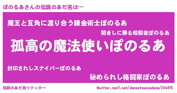 | 胡散臭い通販商品みたいなあだ名 | 『信頼と実績のサプリメント…その名も「ぽのるあ」』 |
