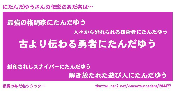 | 意味不明あだ名 | 『住所不定無職にたんだゆう(95歳)』 |