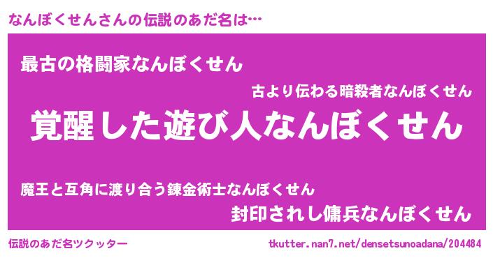 | ヒーロー風カッコイイあだ名 | 『究極戦士ナンボクセン』『幻影騎士ナン』 |