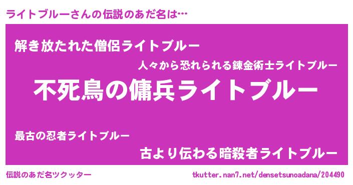 | 男性向けラノベタイトル風あだ名 | 『この素晴らしい世界にライトブルーを!』 |