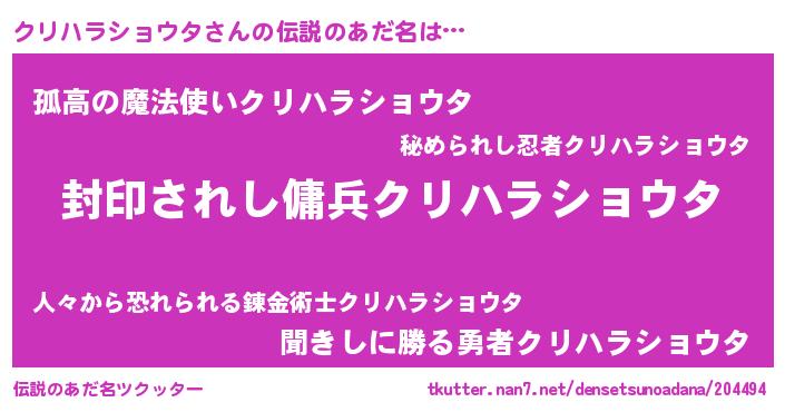| 胡散臭い通販商品みたいなあだ名 | 『億万長者になれる水晶球…その名も「クリハラショウタ」』 |