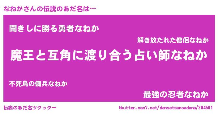 | 意味不明あだ名 | 『眠気覚ましガムなねか味』『自称なねか』 |