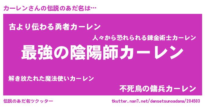| ファンタジー風あだ名 | 『エターナルカーレンー』『カーフェル』 |