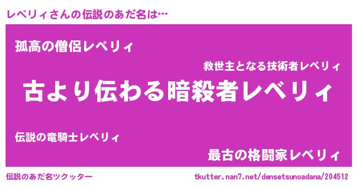 | ヒーロー風カッコイイあだ名 | 『仮面レベダー』『ネオレベリィ』 |