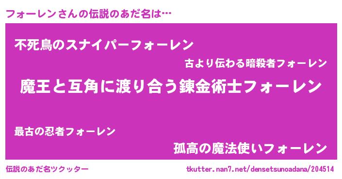 | ヒーロー風カッコイイあだ名 | 『慈愛の使者フォーレン』『暗黒騎士フォ』 |