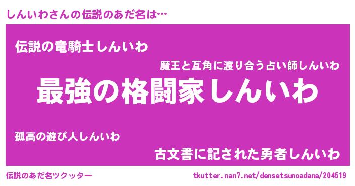 | 女子向けラノベタイトル風あだ名 | 『しんいわの婚約者』『しんいわ恋絵巻』 |