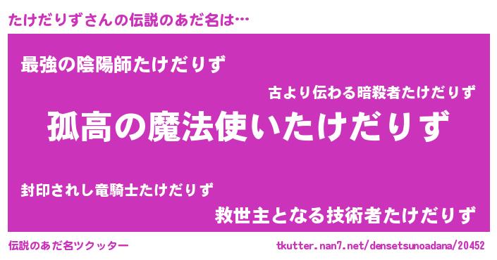 | ヒーロー風カッコイイあだ名 | 『超時空戦士タケダリズ』『炎刃騎士タケ』 |