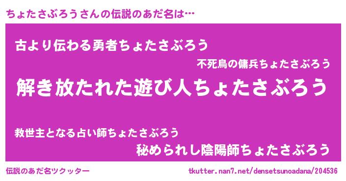 | 女子向けラノベタイトル風あだ名 | 『闇のちょたさぶろう』 |