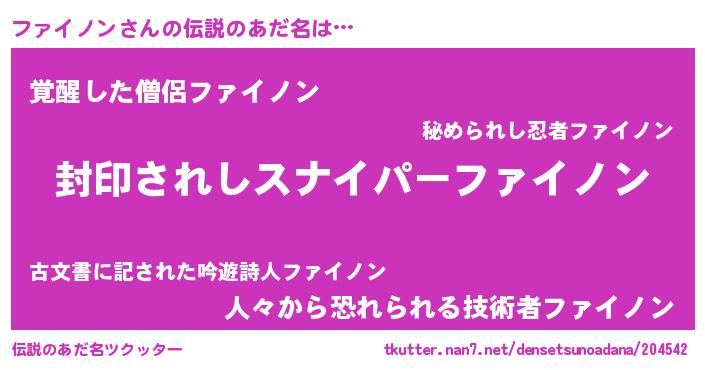 | 意味不明あだ名 | 『ペロリンファイノン』『自称ファイノン』 |