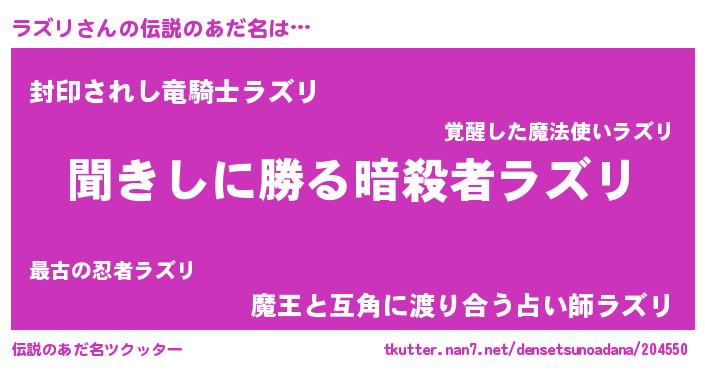 | ヒーロー風カッコイイあだ名 | 『ネオラズリ』『スーパーラズリ』 |