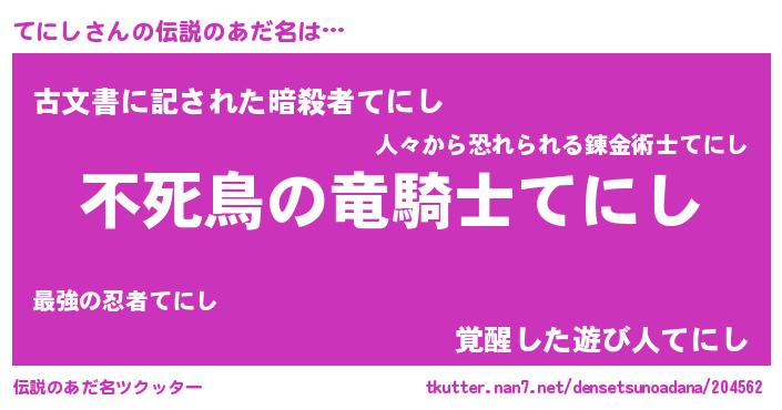 | 女子向けラノベタイトル風あだ名 | 『てにし姫と円卓の騎士』 |