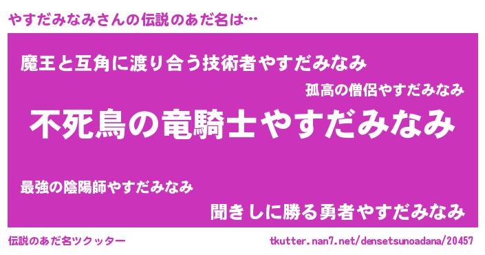 | ヒーロー風カッコイイあだ名 | 『スーパーヤスダミナミ』『仮面ヤスダー』 |