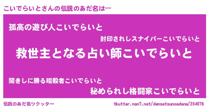 | ヒーロー風カッコイイあだ名 | 『天空の使者こいでらいと』 |