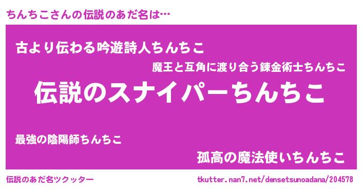 | 胡散臭い通販商品みたいなあだ名 | 『必ず成功する霊験あらたかなお札…その名も「ちんちこ」』 |