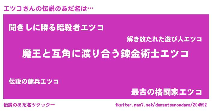 | ヒーロー風カッコイイあだ名 | 『愛の使者エツコ』『ネオエツコ』 |