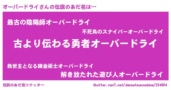 | 胡散臭い通販商品みたいなあだ名 | 『来世でも幸せになれる水素水…その名も「オーバードライ」』 |