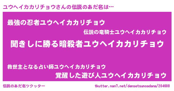 | ヒーロー風カッコイイあだ名 | 『仮面ユウダー』『炎刃騎士ユウ』 |