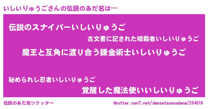 | 女子向けラノベタイトル風あだ名 | 『いしいりゅうご恋絵巻』 |