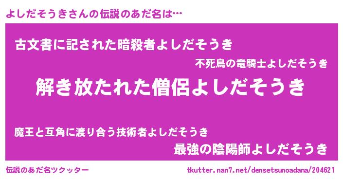 | 意味不明あだ名 | 『自称よしだそうき』 |