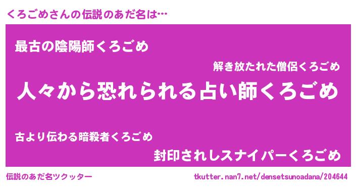 | 男性向けラノベタイトル風あだ名 | 『おまえをオタクにしてやるから、俺をくろごめにしてくれ! 』 |