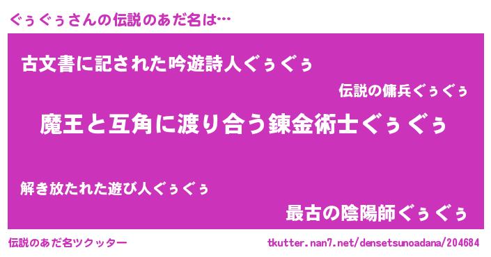 | 意味不明あだ名 | 『住所不定無職ぐぅぐぅ(95歳)』 |