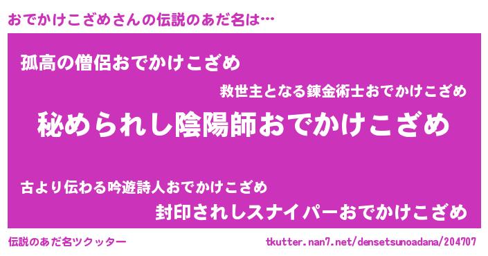 | 胡散臭い通販商品みたいなあだ名 | 『ガンによく効く冬虫夏草…その名も「おでかけこざめ」』 |