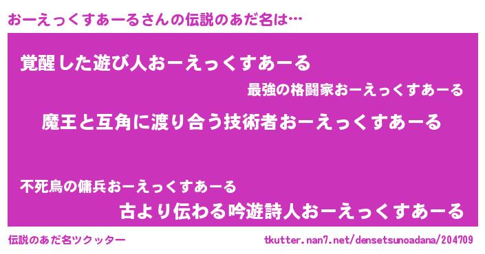 | ヒーロー風カッコイイあだ名 | 『愛の使者おーえっくすあーる』 |