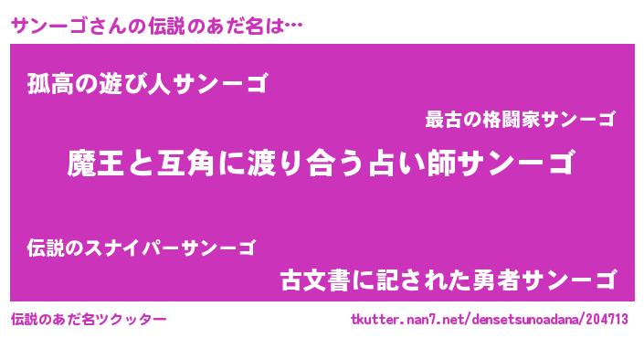 | 意味不明あだ名 | 『住所不定無職サンーゴ(43歳)』 |