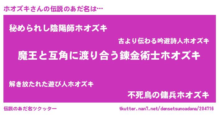 | 意味不明あだ名 | 『住所不定無職ホオズキ(71歳)』 |