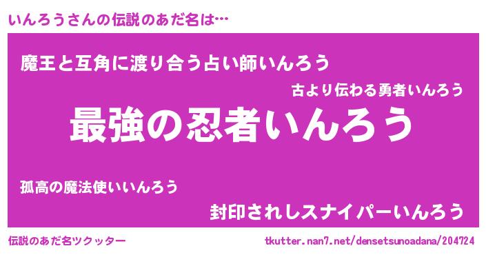| 意味不明あだ名 | 『自称いんろう』『いんろうフォーエバー』 |