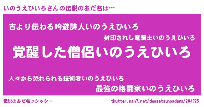 | ヘコむあだ名 | 『いの太郎』『いのうえひいろ(笑)』 |