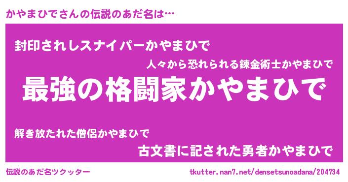 | ヒーロー風カッコイイあだ名 | 『ウルトラかやまひでマン』 |