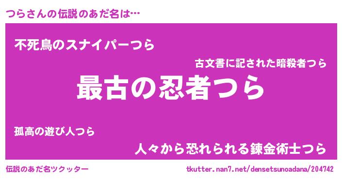| 女子向けラノベタイトル風あだ名 | 『つら伯爵の花嫁』『つら姫と円卓の騎士』 |