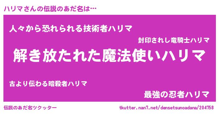 | ヒーロー風カッコイイあだ名 | 『幻影騎士ハリ』『友情の使者ハリマ』 |