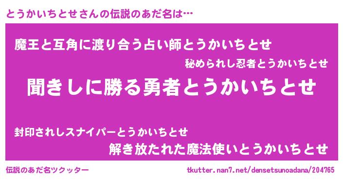 | 男性向けラノベタイトル風あだ名 | 『とうかいちとせという概念が存在しない退屈な世界 』 |