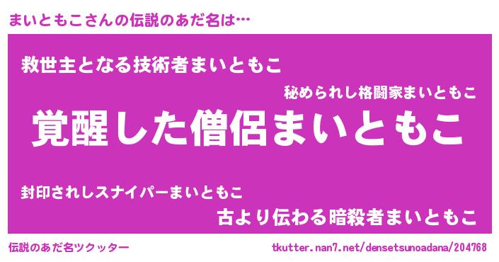 | ヒーロー風カッコイイあだ名 | 『幻影騎士マイ』『天空の使者まいともこ』 |